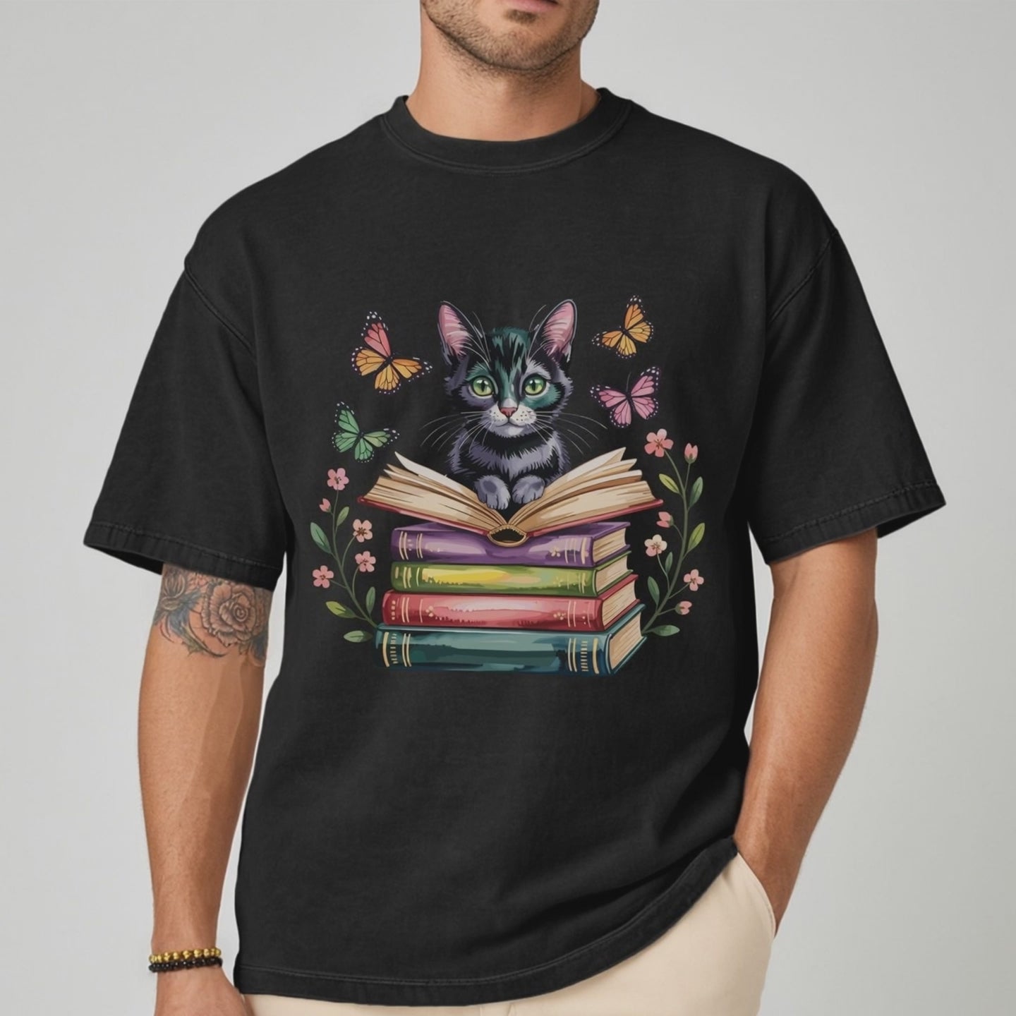 Show off your love for cats and reading with our Cute Cat with Books Tee! Featuring an adorable cat lounging among colorful books, this soft, comfortable shirt is perfect for bookworms and cat lovers alike. Ideal for casual wear, cozy reading days, or gifting to your favorite feline fan!